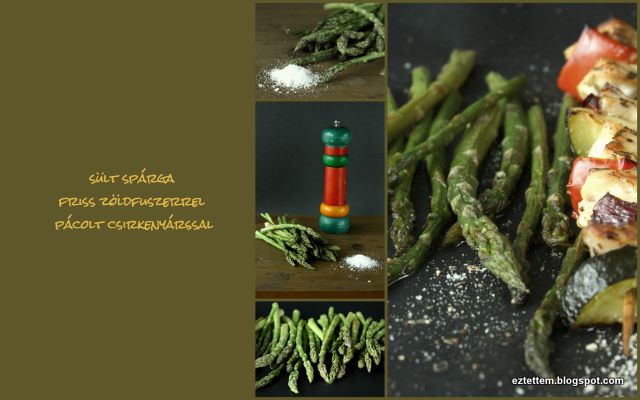 sült spárga zöldfűszerekkel pácolt csirkenyárssal