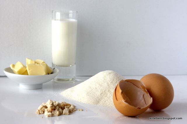 - ehhez hozzáöntöttem a vajjal összemelegített tejet - összekevertem.