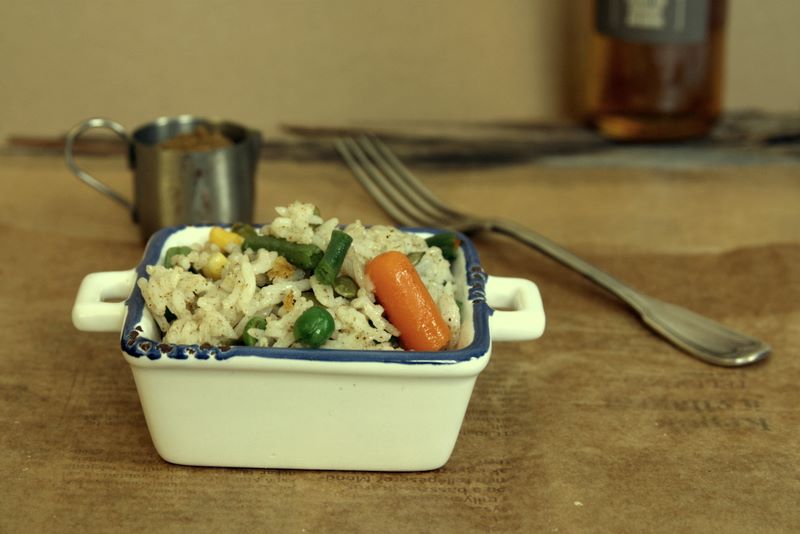 viszont maradt rizs. meg párolt borsó-répa-zöldbab. és miután ez egy receptgyűjtés magamnak, most idevezetem a nagyszabású ebédemet (Balázs szendvicset evett, btw - remekül prosperál az új rendszerem).